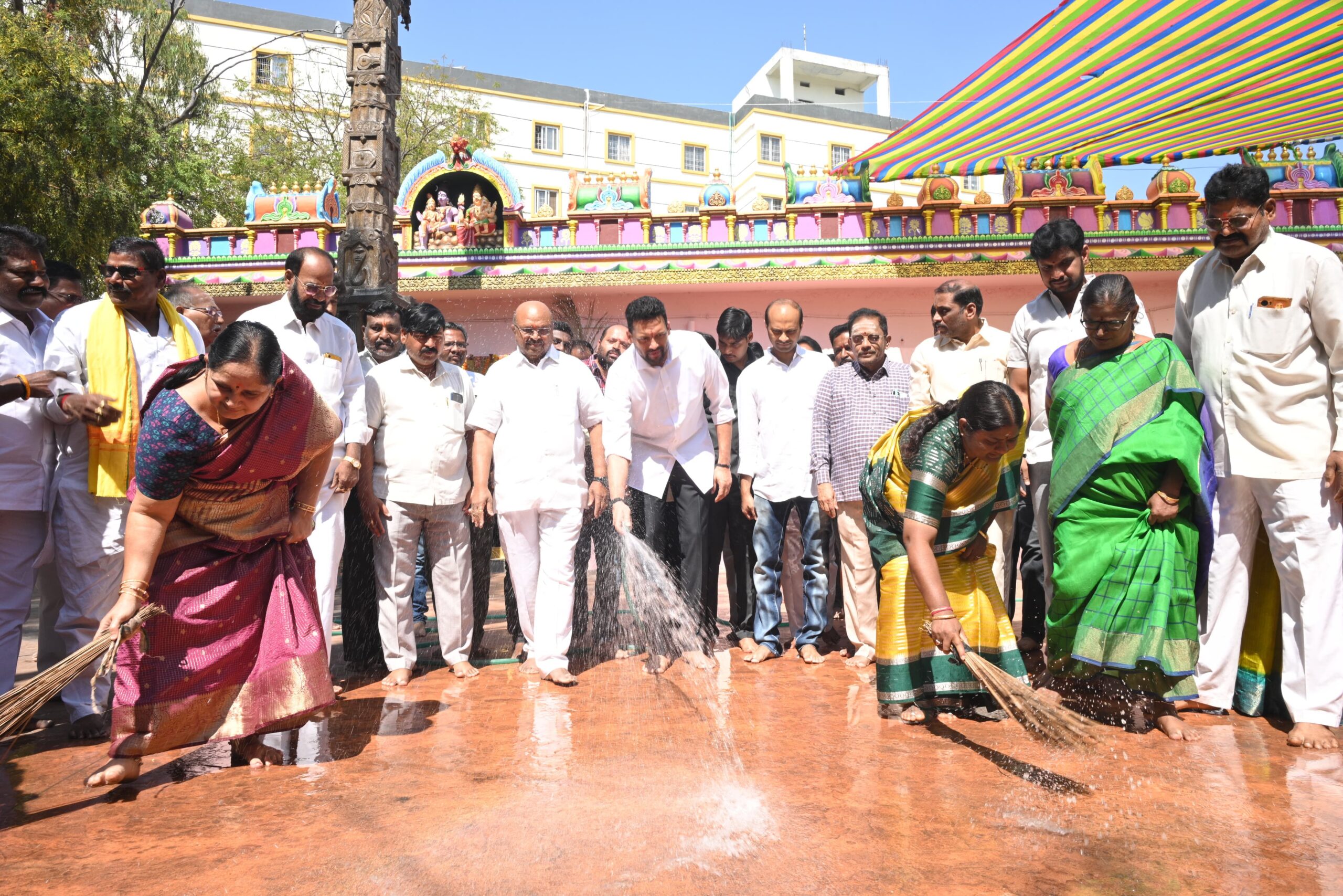 శాసనమండలిలో వైసీపీ నేతలు చెప్పులేసుకుని కలియుగ ప్రత్యక్ష దైవం వేంకటేశ్వర స్వామి ఫోటోలు ప్రదర్శించడం ఎంతో బాధాకరమని రాష్ట్ర పరిశ్రమలు, వాణిజ్యం, పుడ్ ప్రాసెసింగ్ శాఖ మంత్రి టీజీ భరత్ అన్నారు. కర్నూలు నగరంలోని సంకల్బాగ్లోని వేంకటేశ్వరస్వామి ఆలయంలో టీడీపీ నేతలతో కలిసి ఆయన ఆలయశుద్ధి కార్యక్రమం చేపట్టారు. అనంతరం స్వామివారికి ప్రత్యేక పూజ చేశారు. ఈ సందర్భంగా మంత్రి మాట్లాడుతూ వైసీపీ నేతలు శాసనమండలిలో వ్యవహరించిన తీరు సరైంది కాదన్నారు. ఎన్నో ముఖ్యమైన అంశాల గురించి చర్చించకుండా సభను జరగకుండా చేశారన్నారు. తిరుమల నెయ్యిలో కల్తీ జరిగింది వాస్తవమన్నారు. తప్పు జరిగింది కాబట్టి మాజీ ముఖ్యమంత్రి జగన్మోహన్ రెడ్డి అడ్డంగా వాదిస్తున్నారని, తిరుమల వెళ్లి తప్పు జరిగిందని ఒప్పుకొని దేవుడిని మొక్కుకోవాలన్నారు. జగన్ వాస్తవాలు తెలుసుకొని ఇప్పటికైనా మారాలని ఆయన హితవు పలికారు. వేంకటేశ్వర స్వామితో పెట్టుకున్న వాళ్లు తప్పకుండా శిక్ష అనుభవిస్తారన్నారు. వైసీపీ నేతలకు బుద్ధి రావాలని వేంకటేశ్వర స్వామిని మొక్కుకున్నట్లు చెప్పారు. ఈ కార్యక్రమంలో కుడా ఛైర్మన్ సోమిశెట్టి వెంకటేశ్వర్లు, టిడిపి జిల్లా అధ్యక్షురాలు గుడిసె క్రిష్ణమ్మ, బొందిలి కార్పొరేషన్ ఛైర్మన్ విక్రమ్ సింగ్, టిడిపి జిల్లా ఉపాధ్యక్షుడు సోమిశెట్టి శ్రీకాంత్, ఎం.ఎస్.ఎం.ఈ డైరెక్టర్ కౌశిక్, మార్కెట్ యార్డు డైరెక్టర్ మారుతి శర్మ, సీనియర్ నాయకులు, కార్యకర్తలు పాల్గొన్నారు.