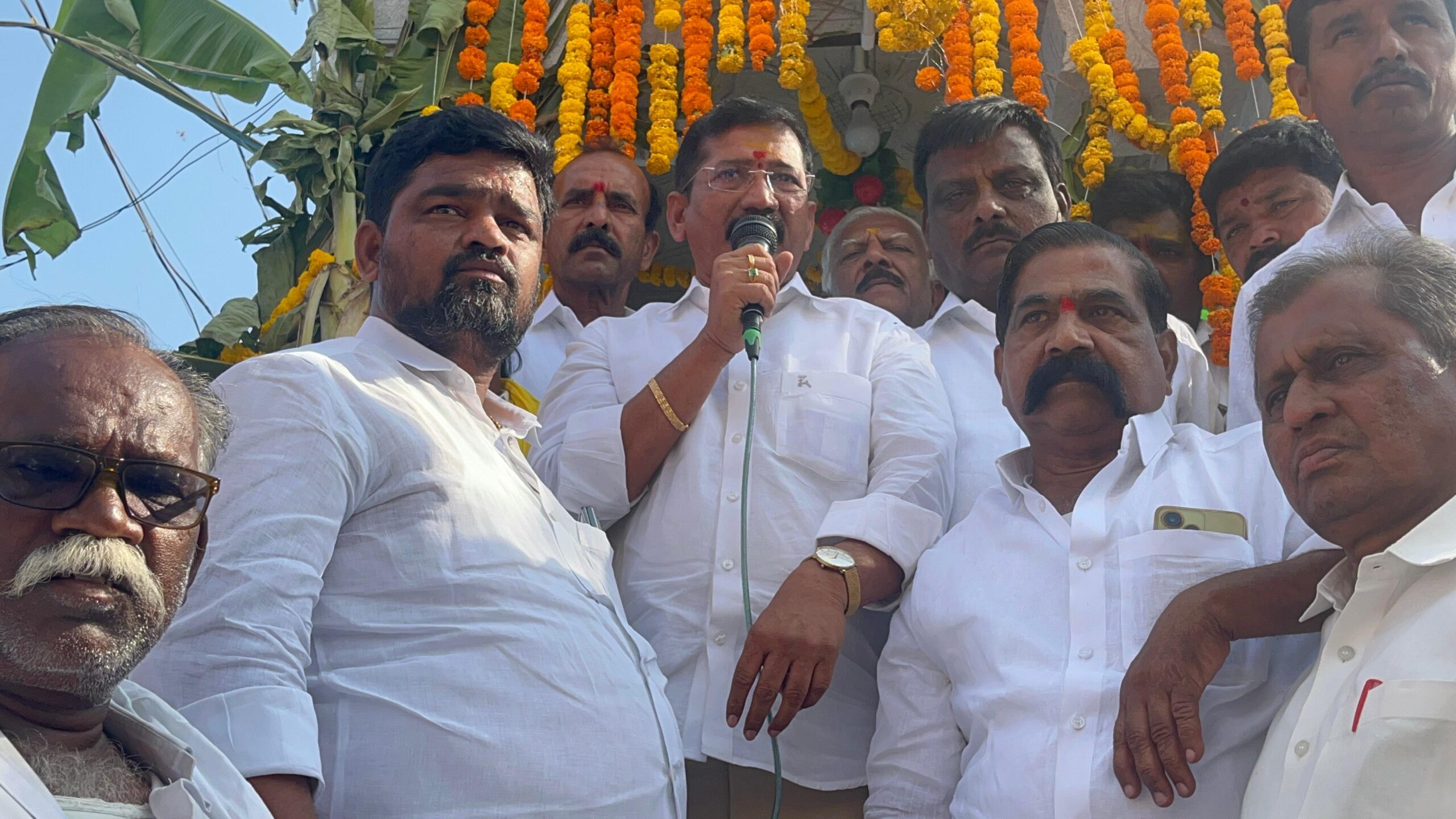 కర్నూలు జిల్లా ఆలూరు నియోజకవర్గంలో ఎంపీ వర్గం, ఇంచార్జి వర్గం అంటూ రెండు వర్గాలు లేవని ఎంపీ బస్తిపాటి నాగరాజు స్పష్టం చేశారు.. హొళగుంద మండలం హెబ్బటం గ్రామంలో నూతనంగా ఏర్పాటు చేసిన భక్త కనక దాసు విగ్రహాన్ని ఆయన ఆవిష్కరించారు..ఈ సందర్బంగా కనకదాసు విగ్రహానికి ప్రత్యేక పూజలు చేశారు…అనంతరం ఎంపీ నాగరాజు మాట్లాడుతా ఆలూరు నియోజకవర్గంలో తెలుగుదేశం పార్టీలో వర్గాలు లేవని, అంతా ఒక్కటే పార్టీ వర్గమన్నారు.. రానున్న స్థానిక సంస్థల ఎన్నికల్లో అందరూ కలిసికట్టుగా పార్టీ విజయానికి కృషి చేయాలని పిలుపునిచ్చిన ఎంపీ, నియోజకవర్గ అభివృద్ధికి కృషి చేస్తున్నట్లు తెలిపారు…ఈ కార్యక్రమంలో రాష్ట్ర కురువ కార్పొరేషన్ చైర్మన్ దేవేంద్రప్ప, డైరెక్టర్లు శ్రీనివాసులు, రామకృష్ణ, ఆలూరు మాజీ మార్కెట్ యార్డు చైర్మన్ జయరాం, స్టానిక టీడీపీ నాయకులు, కురువ సంఘం నాయకులు పాల్గొన్నారు..