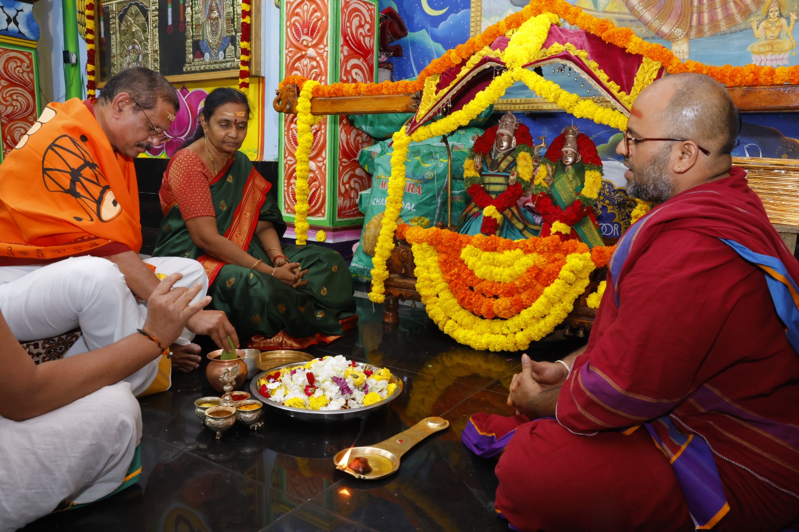 అనంతరం శ్రీ స్వామిఅమ్మవార్ల ఉత్సవమూర్తులను పల్లకీలో వేంచేబు చేయించి శాస్త్రోక్తంగా షోడశోపచారపూజలు జరిపించబడ్డాయి.