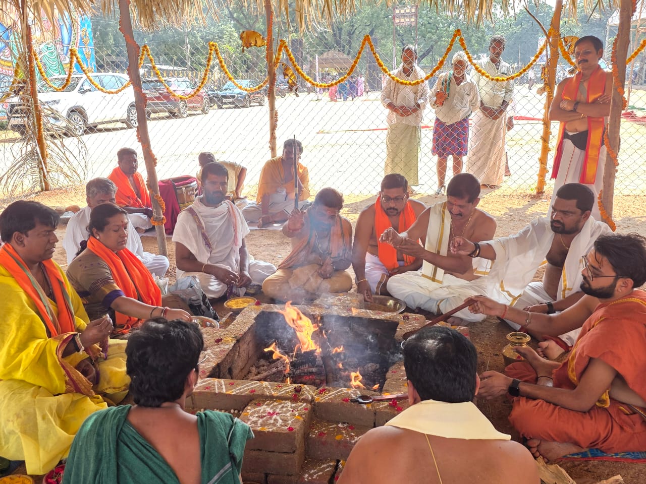 కర్నూలు జిల్లా ఎమ్మిగనూరులోని వివర్స్ కాలనీ మైదానం లో 87వ విశ్వశాంతి మహాయాగ మహోత్సవాలు వైభవంగా సాగుతున్నాయి…14 రోజుల పాటు సాగే ఈ మహాయాగ మహోత్సవాలలో భాగంగా 13 వ రోజు నిర్వహించిన చండీ హోమాలలో ఎంఎల్ఏ బీ.వి జయనాగేశ్వరరెడ్ది తో కలిసి ఎంపీ బస్తిపాటి నాగరాజు పాల్గొన్నారు.. చండీ హోమం చేసిన ఎంపీ, ఎంఎల్ఏ లు, అనంతరం పూజలు చేసి ఆశీస్సులు తీసుకున్నారు.. ఈ కార్యక్రమంలో రాష్ట్ర కురువ కార్పొరేషన్ డైరెక్టర్ రామకృష్ణ పాల్గొన్నారు