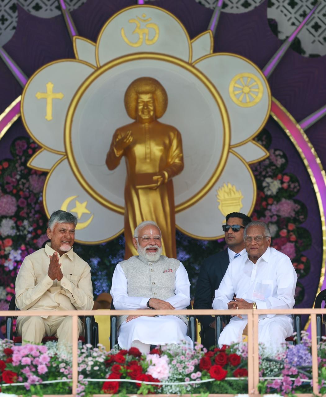 సేవో పరమో ధర్మః’- ఎన్నో మార్పులు, సవాళ్ల నడుమ మన నాగరికతకు అంతర్గత బలాన్నిస్తూ.. శతాబ్దాల తరబడి భారత్ను సుస్థిరంగా నిలిపిన నీతి ఇదే ప్రధానిసేవనే మానవ జీవన కేంద్రంగా నిలిపిన వ్యక్తి శ్రీ సత్య సాయిబాబాసామాజిక సేవకు, మానవ సంక్షేమానికి ఆధ్యాత్మికతను సాధనంగా మలిచిన మహనీయుడు శ్రీ సత్య సాయిబాబా*వోకల్ ఫర్ లోకల్’ స్ఫూర్తిని మరింత బలోపేతం చేసేలా సంకల్పిద్దాంవికసిత భారత్ సాకారం కావాలంటే స్థానిక ఆర్థిక వ్యవస్థను శక్తిమంతం చేయాలి: ప్రధాని ఆంధ్రప్రదేశ్లోని పుట్టపర్తిలో భగవాన్ శ్రీ సత్యసాయి బాబా శత జయంత్యుత్సవాల సందర్భంగా భక్తకోటిని ఉద్దేశించి ప్రధానమంత్రి శ్రీ నరేంద్ర మోదీ ఈ రోజు ప్రసంగించారు. ‘సాయిరాం’ అంటూ ప్రసంగాన్ని మొదలుపెట్టిన ప్రధానమంత్రి.. ఈ పవిత్ర పుట్టపర్తి క్షేత్రంలో భక్తులందరి నడుమ ఉండడం ఒక భావోద్వేగభరిత, ఆధ్యాత్మిక అనుభవమని పేర్కొన్నారు. కొద్దిసేపటి కిందటే బాబా సమాధి వద్ద పుష్పాంజలి ఘటించే అవకాశం తనకు దక్కిందన్నారు. బాబా పాదాలకు నమస్కరించి, ఆయన ఆశీస్సులను పొందినట్లు చెప్పారు. బాబా ఆశీస్సులు ఎప్పుడు అందించినా మనసు భావోద్వేగానికి లోనవుతుందని మోదీ వ్యాఖ్యానించారు.శ్రీ సత్యసాయి బాబా శతజయంతి సంవత్సరం ఈ తరానికి ఒక వేడుక మాత్రమే కాదని, దైవాశీర్వాదమని మోడీ అన్నారు. బాబా ఇప్పుడు భౌతికంగా మన మధ్య లేకపోయినా.. ఆయన బోధనలు, ప్రేమ, సేవా స్ఫూర్తి ప్రపంచవ్యాప్తంగా కోట్లాది మందికి మార్గనిర్దేశం చేస్తూనే ఉన్నాయని వ్యాఖ్యానించారు. ఈ కొత్త వెలుగు, మార్గనిర్దేశం, సంకల్పంతో.. 140కి పైగా దేశాల్లో లెక్కకు మిక్కిలి భక్తులు జీవితంలో ముందుకు సాగుతున్నారని ప్రధానమంత్రి వ్యాఖ్యానించారు.వసుధైక కుటుంబమన్న ఆదర్శానికి శ్రీ సత్య సాయిబాబా జీవితం సజీవ ఉదాహరణగా అభివర్ణించిన ప్రధానమంత్రి.. ‘‘అందుకే ఈ శత జయంతి సంవత్సరం విశ్వవ్యాప్త ప్రేమ, శాంతి, సేవా పర్వంగా మారింది’’ అని వ్యాఖ్యానించారు. బాబా సేవా పరంపరను ప్రతిబింబించేలా ఈ సందర్భంగా రూ. 100 స్మారక నాణేన్నీ, తపాలా బిళ్ళనీ విడుదల చేయడం ఈ ప్రభుత్వం చేసుకున్న అదృష్టమన్నారు. భక్తులకు, తోటి వలంటీర్లకు, ప్రపంచవ్యాప్తంగా ఉన్న బాబా అనుచరులకు ఆయన హృదయపూర్వక శుభాకాంక్షలు తెలిపారు.సేవే భారతీయ నాగరికతకు మూలం’’ అని ప్రధానమంత్రి వ్యాఖ్యానించారు. భారత్లోని వివిధ ఆధ్యాత్మిక, తాత్విక సంప్రదాయాలన్నింటికీ సేవే అంతిమ గమ్యమని స్పష్టం చేశారు. భక్తి, జ్ఞానం, కర్మ… ఏ మార్గంలో నడిచినా సరే, అవన్నీ సేవతో అనుసంధానమయ్యే ఉంటాయి. ‘‘సమస్త జీవరాశుల్లో కొలువై ఉన్న దైవానికి సేవ లేకుండా భక్తికి అర్థం లేదు. ఇతరుల పట్ల కారుణ్య భావాన్ని మేల్కొల్పలేనిది జ్ఞానం ఎలా అవుతుంది? తన పనిని సమాజ సేవగా సమర్పిం
