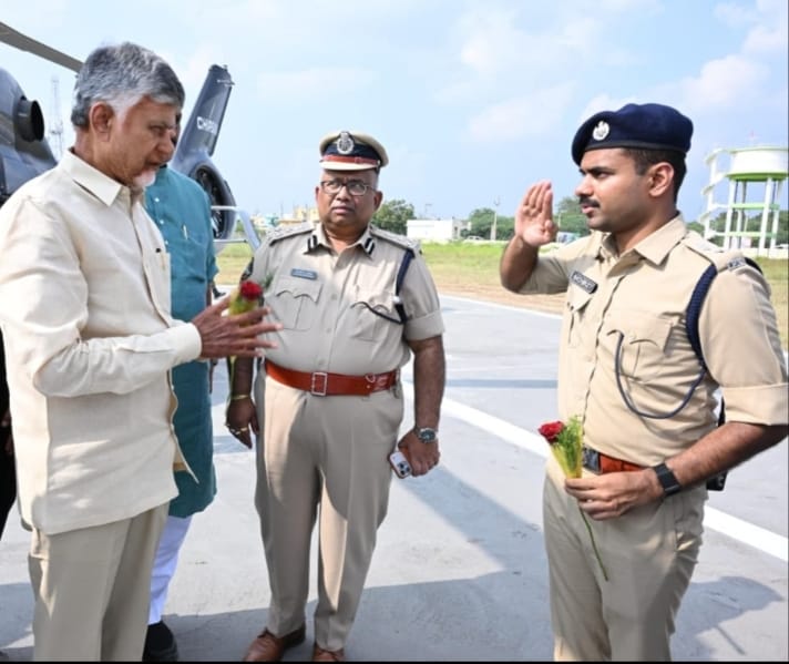 అన్నదాత సుఖీభవ- పీఎం కిసాన్ రెండో విడత నిధుల విడుదల కు వై ఎస్ ఆర్ కడప జిల్లా కమలాపురం నియోజక వర్గం పెండ్లిమర్రి మండలం లో ఏర్పాటు చేసిన కార్య క్రమము లో రైతులతో కలసి నిధుల విడుదల కార్యక్రమం లో పాల్గొనేందుకు విచ్చేసిన రాష్ట్ర ముఖ్యమంత్రి నారా చంద్రబాబు నాయుడు పెండ్లి మర్రి లో ఏర్పాటు చేసిన హెలిప్యాడ్ వద్ద జిల్లా ఎస్పీ షెల్కే నచికేత్ విశ్వనాథ్ ఘనంగా స్వాగతం పలికారు.
