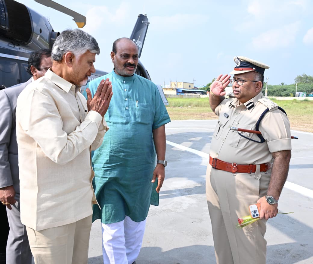 అన్నదాత సుఖీభవ- పీఎం కిసాన్ రెండో విడత నిధుల విడుదల కు వై ఎస్ ఆర్ కడప జిల్లా కమలాపురం నియోజక వర్గం పెండ్లిమర్రి మండలం లో ఏర్పాటు చేసిన కార్య క్రమము లో రైతులతో కలసి నిధుల విడుదల కార్యక్రమం లో పాల్గొనేందుకు విచ్చేసిన రాష్ట్ర ముఖ్యమంత్రి నారా చంద్రబాబు నాయుడు పెండ్లి మర్రి లో ఏర్పాటు చేసిన హెలిప్యాడ్ వద్ద కర్నూలు రేంజ్ డి.ఐ.జి డా. కోయ ప్రవీణ్ ఘనంగా స్వాగతం పలికారు.