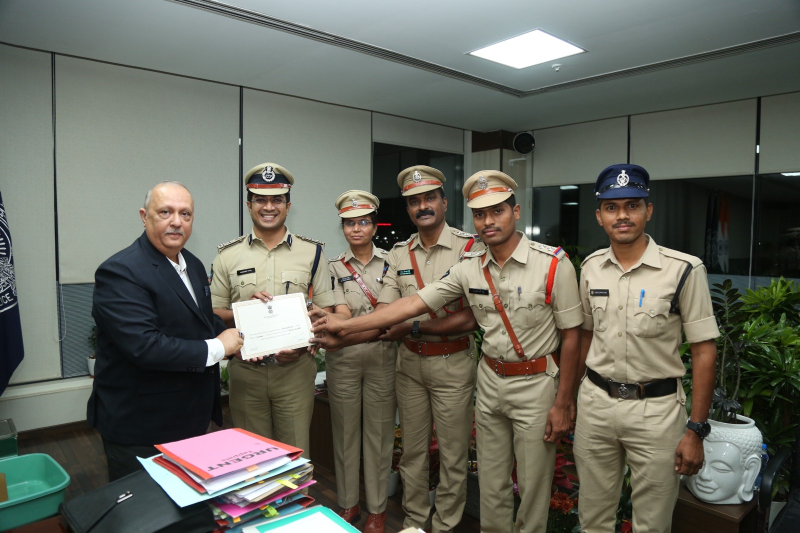 డీజీపీ నుండి సర్టిఫికెట్ ఆఫ్ ఎక్సలెన్సీ అవార్డు అందుకున్న ,:- డిఐజి, కర్నూలు జిల్లా ఇన్ చార్జ్ ఎస్పీ విక్రాంత్ పాటిల్, డిఎస్పీ భార్గవి, సిఐ మంజునాథ్, ఎస్సై నిరంజన్ రెడ్డి