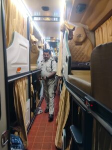 కర్నూలు నగరంలో జాతీయ రోడ్డు భద్రత 37వ మాసోత్సవాలు డిప్యూటీ ట్రాన్స్పోర్ట్ కమిషనర్ ఎస్ శాంత కుమారి ఆదేశాల మేరకు మోటార్ వెహికల్ ఇన్స్పెక్టర్ మల్లికార్జున పర్యవేక్షణలో 14వ రోజు కొనసాగుతున్నాయి, జాతీయ రోడ్డు భద్రత మాసోత్సవాలు లో భాగంగా ఈ నెల 1 నుండి 31 వరకు నెల రోజుల పాటు జాతీయ రోడ్డు భద్రతా మాసోత్సవాల సంధర్బంగా 14వ తేదీ తెల్లవారు జామున ఎస్. శాంత కుమారి, ఉప రవాణా కమిషనర్, ఆదేశాలతో కాంట్రాక్ట్ క్యారేజ్ బస్సు లను తనిఖీ చేయడం జరిగిందన్నారు. బస్సు కి సంబంధించి అన్ని వాలిడ్ పత్రాలు ఫిట్నెస్ సర్టిఫికెట్, టాక్స్, పర్మిట్, ఇన్సూరెన్స్, పొల్యూషన్ సర్టిఫికెట్స్ మరియు భద్రతా ప్రమాణాలు అనగా ఎమర్జెన్సీ ఎక్ఇటూ, ఫైర్ ఎక్స్టింగుషర్స్, సేఫ్టీ హ్యామర్, ఫస్ట్ ఎయిడ్ కిట్ పరిశీలించారు. బస్సులో పేలుడు పదార్థాలు మరియు కమర్షియల్ సామాన్లు తీసుకొని వెళుతున్నారా అని తనకి చేశారు. మరియు సంక్రాంతి పండుగ సందర్భంగా అధిక రద్దీ కారణంగా, అధిక టికెట్ ధరలు ప్యాసింజర్ల పై వసూలు చేస్తున్నారా అని తనికి చేశారు. ఈ నిబంధనలు అతిక్రమించిన బస్సు ల పై 7 (ఏడు) కేసు లు రాసి ₹30,000/- జరిమానా విధించారు. ఈ తనకి లో మోటార్ వెహికల్స్ ఇన్స్పెక్టర్ కె మల్లికార్జున మరియు సిబంది పాల్గొన్నరు.