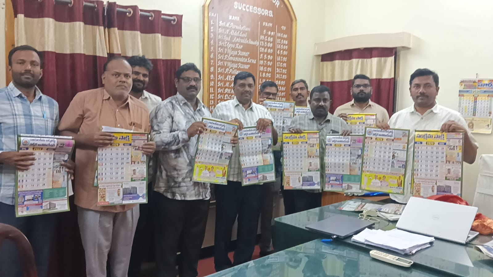 కర్నూల్ నగరంలోని కల్లూరు తాసిల్దార్ కే. ఆంజనేయులు గారి తో రాయలసీమ జర్నలిస్ట్ వెల్ఫేర్ అసోసియేషన్, సంక్షేమ సాక్షి నూతన క్యాలెండర్లను ఆవిష్కరించారు. ఈ సందర్భంగా క్యాలెండర్ ప్రజలకు ఉపయోగకరంగా ఉండాలని, ప్రభుత్వ కార్యాలయాలు, ప్రజాప్రతినిధులు, మీడియా సిబ్బందికి ఇది దోహదపడుతుందని ఆయన తెలిపారు. ఈ కార్యక్రమంలో రాయలసీమ జర్నలిస్ట్ వెల్ఫేర్ అసోసియేషన్ అధ్యక్షులు కె శ్రీనివాసులు పాల్గొని మాట్లాడుతూ ఇటువంటి క్యాలెండర్లు పత్రికలతో ప్రజలకు అవసరమైన సమాచారం అందించడంలో కీలక పాత్ర పోషిస్తాయని అన్నారు. అలాగే మీడియా ప్రతినిధులు మరియు ప్రభుత్వ అధికారుల సమన్వయంతో ప్రజా సమస్యలను వేగంగా పరిష్కరించవచ్చని పేర్కొన్నారు. సంక్షేమ సాక్షి సంపాదకులు కె రాజశేఖర్ మాట్లాడుతూ, నూతన క్యాలెండర్ రూపకల్పన అభినందనీయమని తెలిపారు. కందనవోలు దినపత్రిక స్టాఫ్ రిపోర్టర్ సంధ్య ప్రసాద్ కూడా ఈ కార్యక్రమంలో పాల్గొని తమ అభినందనలు తెలిపారు.